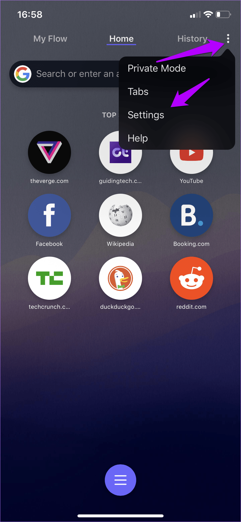 Opera Touch — это потрясающий веб-браузер, созданный с нуля для использования одной рукой на iPhone. С ним очень удобно путешествовать, а встроенная кнопка быстрого действия (FAB) упрощает выполнение общих действий.