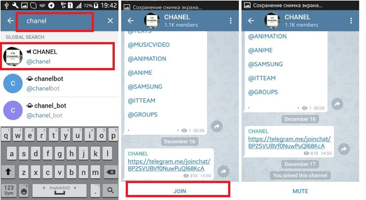 Общедоступные каналы легко находить с помощью ключевых слов. Если вбить в поиск название целиком и (без ошибок), результат отобразится в верхней строке. Для просмотра достаточно тапнуть по линку и пролистать контент.