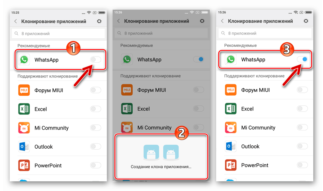 - Отметьте все приложения, для которых вам необходимо создать копии;