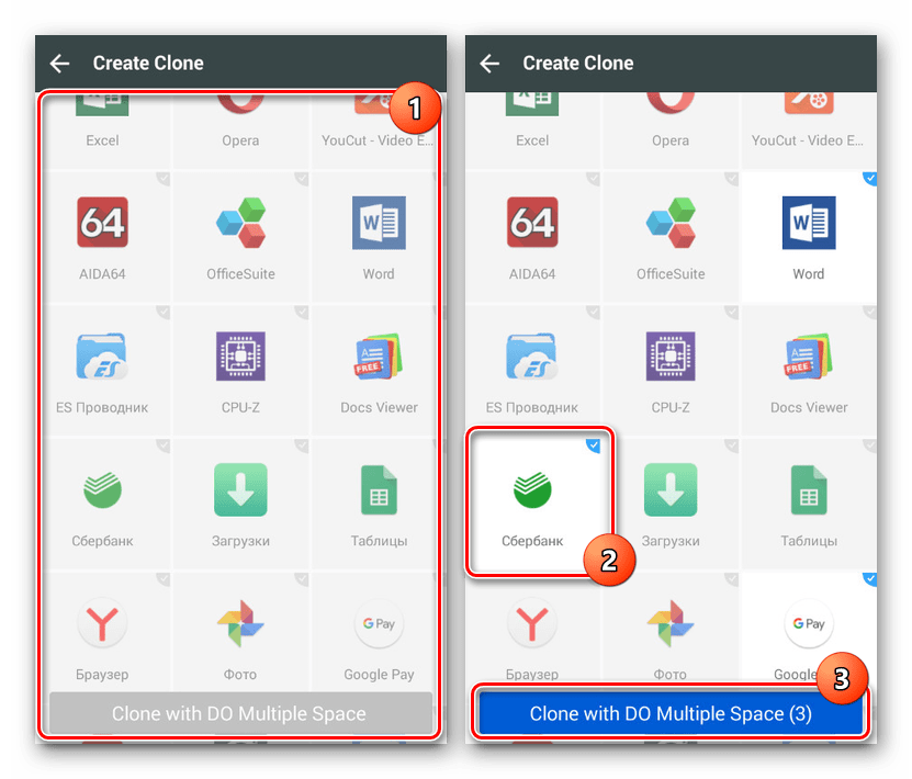 Из общего списка установленных приложений выберите одно или несколько нужных. Для создания копии нажмите кнопку «Clone with DO Multiple Space».
