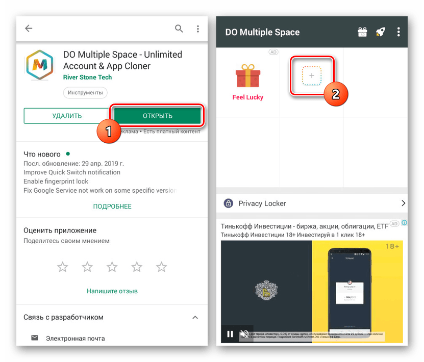 Это один из самых популярных инструментов в Google Play для запуска нескольких копий приложений. Распространяется бесплатно, однако при работе с программой будет появляться реклама. Если хотите ее отключить, необходимо будет заплатить 299 рублей. Но это сравнительно низкая цена за весь тот функционал, который представлен в инструменте. В целом количество загрузок данного продукта перевалило за 100 миллионов, а в рейтинге маркета у него большая часть отзывов — положительные.