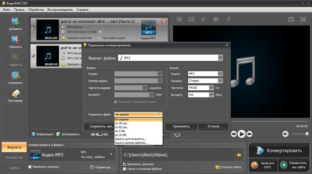 Как обрезать песню в ВидеоМАСТЕРЕ