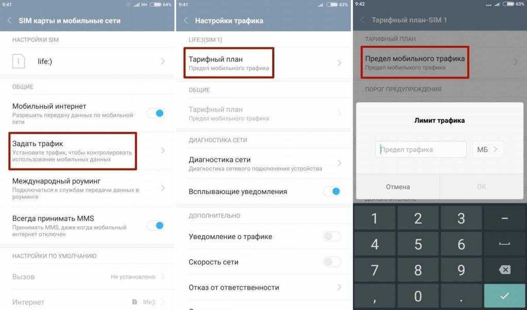 Рис. 7. Можно задать лимит трафика с помощью онлайн-клавиатуры