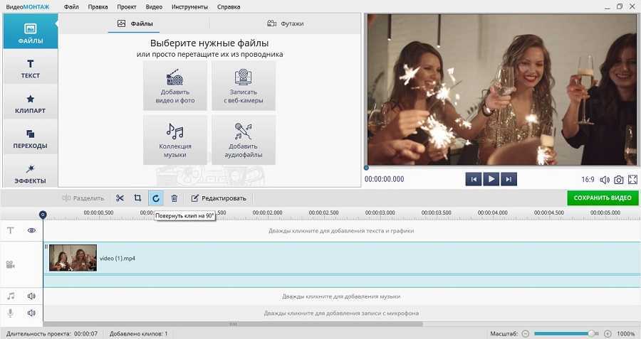 - Повернуть видео на 90, 180, 270 градусов;