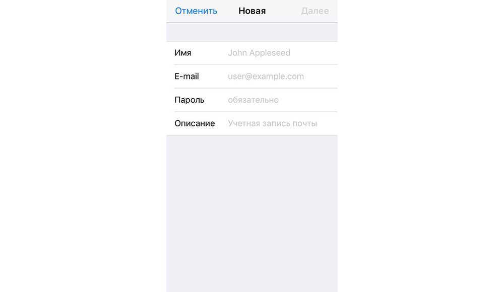 Чтобы настроить любой другой почтовый ящик в стандартном приложении, кроме указанных выше, (например, Mail.ru, Yandex, Rambler) необходимо действовать согласно следующему алгоритму: