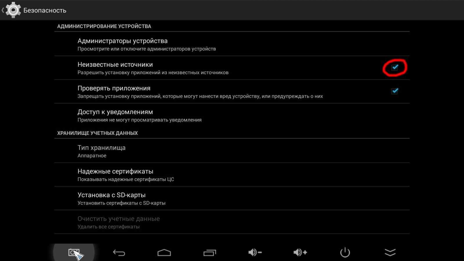 - Установите галочку около пункта «Неизвестные источники — разрешить установку».