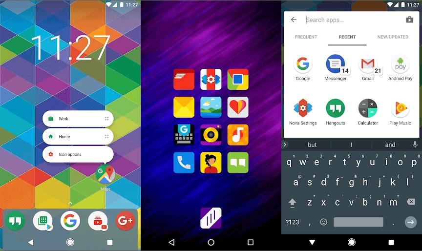 Nova Launcher поддерживает различные наборы иконок, позволяет производить гибкую настройку сетки иконок, менять цвета, создавать прокручиваемую док-панель.