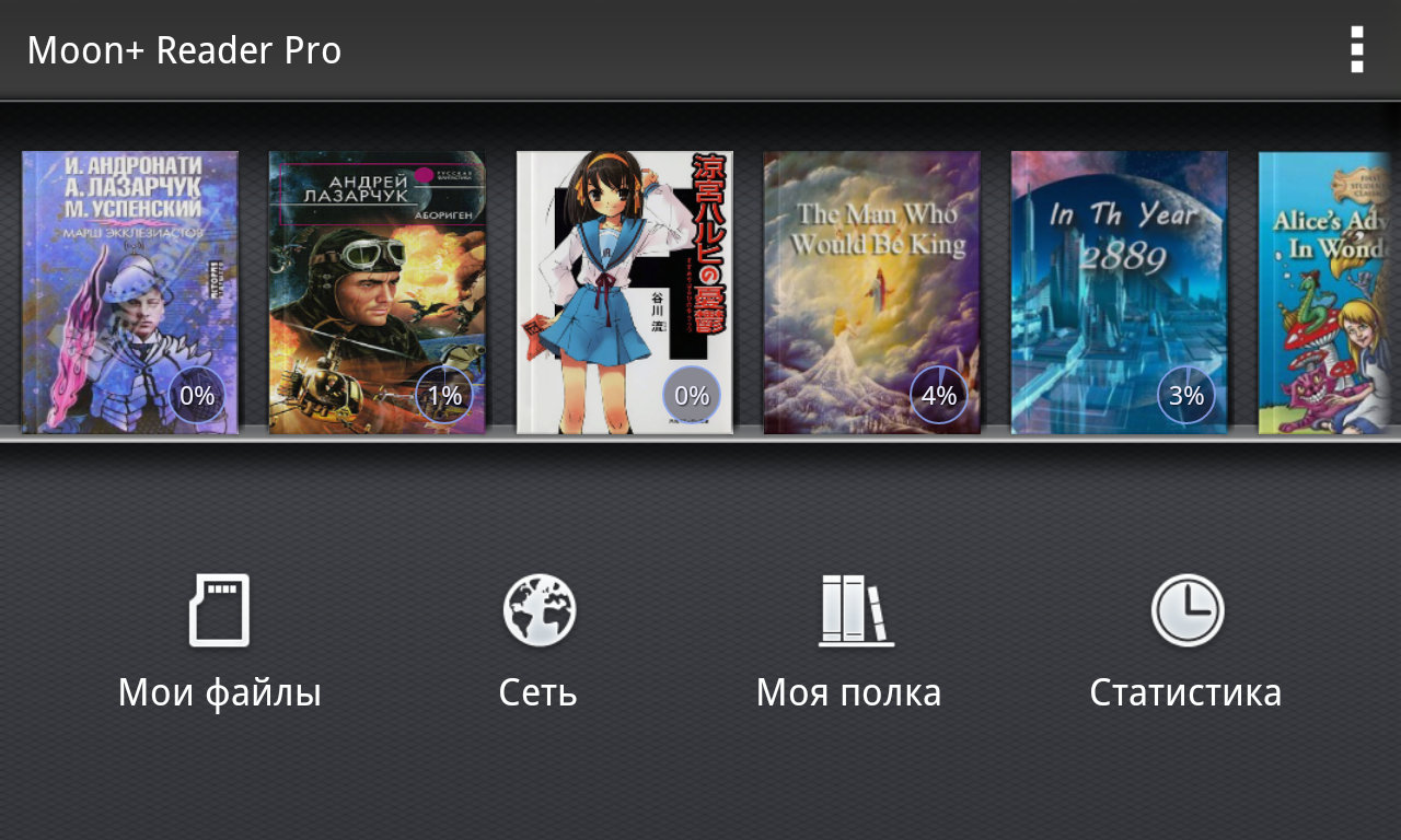 Весьма удобное приложение, главными достоинствами которого можно назвать проработанный внешний вид, возможность синхронизации с Dropbox и встроенный доступ к разнообразным книжным магазинам. Существенный недостаток этой читалки на телефон — огромное количество рекламы и частично заблокированные функции в бесплатной версии. Чтобы избавиться от этих неудобств, придётся приобрести Moon+ Reader Pro.