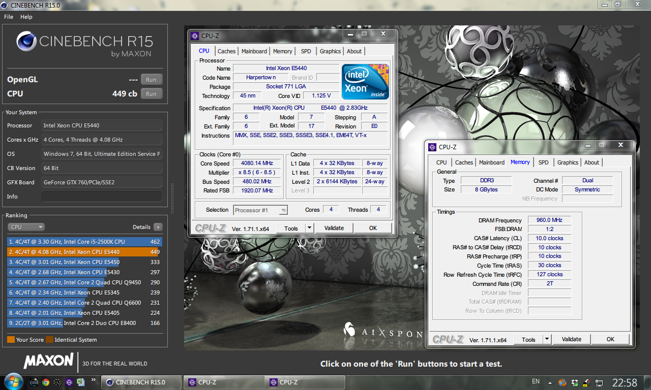 И это в неразогнанном состоянии! А обратите внимание на цену на момент выпуска. Сейчас за б/у Xeon E5450 просят 34 дол =)