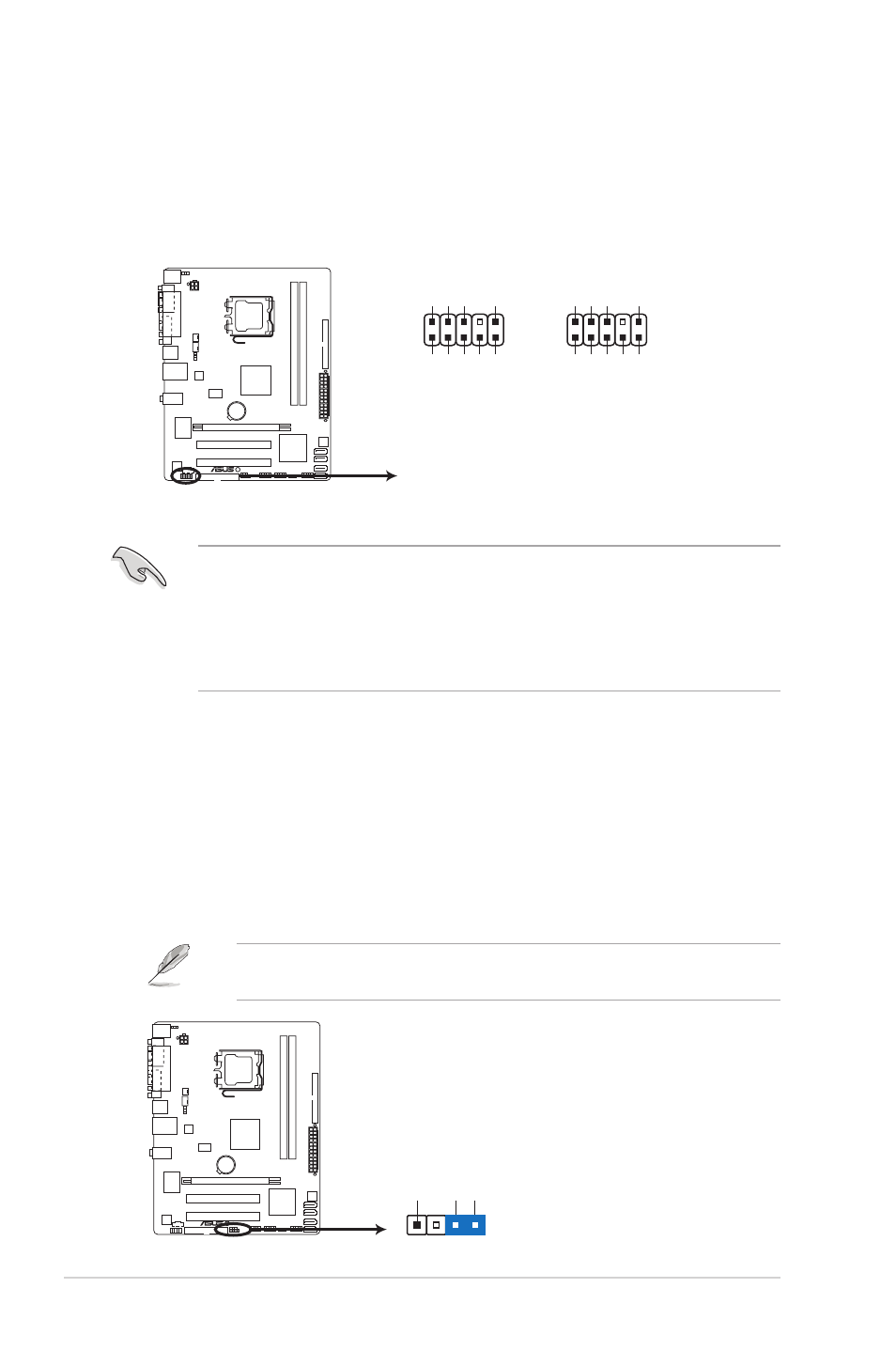 К нижней кромке платы подводятся 4 разъема лицевой панели корпуса. Один из них — SPEAKER. Это громкоговоритель-сигнализатор. Второй включает HDDLED (индикатор жесткого диска), PWRLED (указывает на наличие питания), PWSW (кнопка включения) и RSSW (кнопка аварийной перезагрузки). Третий и четвертый разъемы — это лицевые USB.