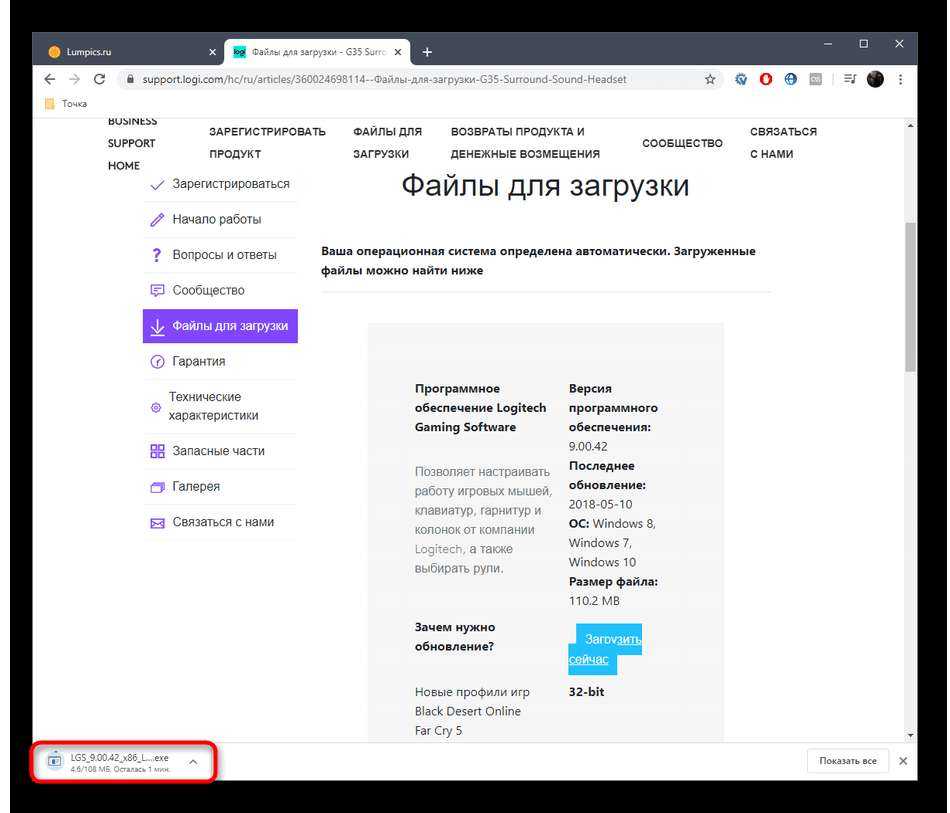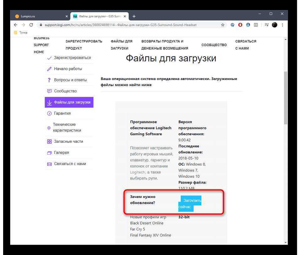 Остается только кликнуть по кнопке «Загрузить сейчас», которая находится в разделе с Logitech Gaming Software.