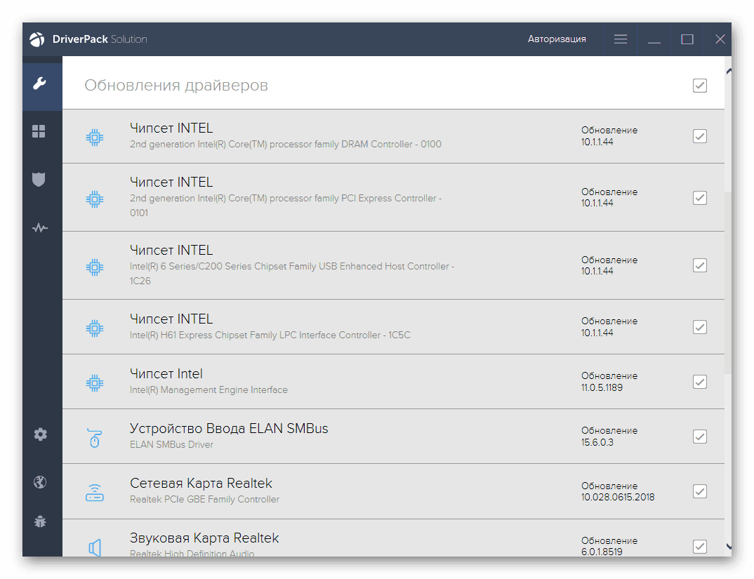 Мы можем смело посоветовать использовать для таких целей DriverPack Solution, поскольку данный софт хорошо показывает себя уже на протяжении многих лет. Вам достаточно загрузить последнюю версию из сети, провести автоматическое сканирование и поставить найденные обновления. Подробные инструкции читайте в другом нашем материале ниже.