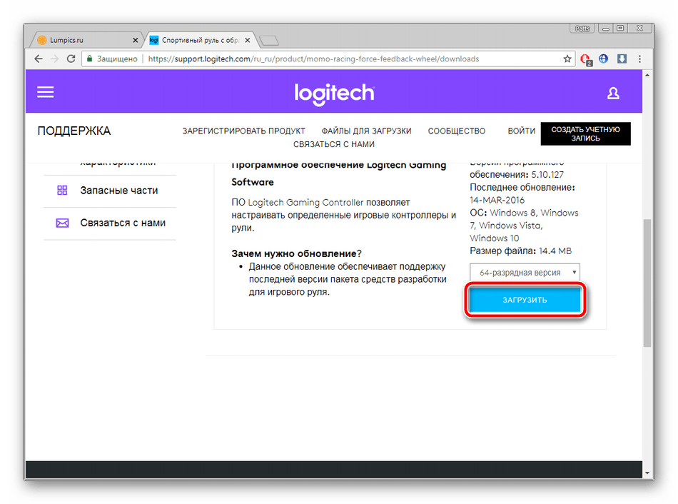 Данное программное обеспечение Logitech Gaming Software (LGS) позволяет настраивать игровые контроллеры и рули. Доступны версии 5.10.127 и 4.60 (устаревшая) для 32-х и 64-х битных операционных систем Windows 10/8/7/Vista/XP и Windows XP/Vista. Размер файлов: 14.4 Мб. и 15.3 Мб.; 8.92 Мб. и 6.72 Мб.