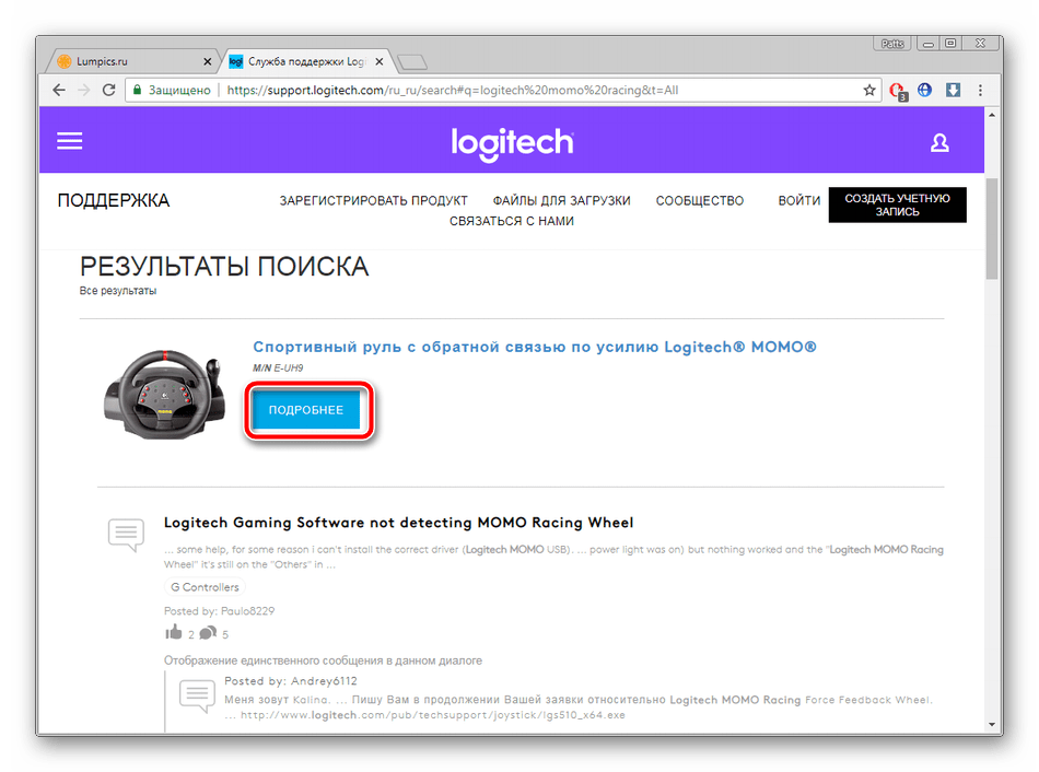 Для получения развернутой информации об игровом руле нажмите на «Подробнее».