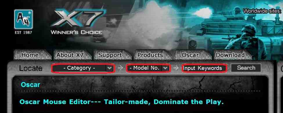 Поиск нужной версии Oscar на официальном сайте A4Tech. В выделенные места вводятся данные вашей мышки