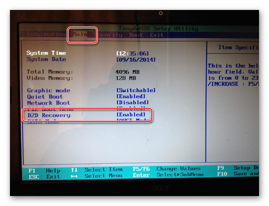 В строке «D2D Recovery» изменить значение на «Enabled».