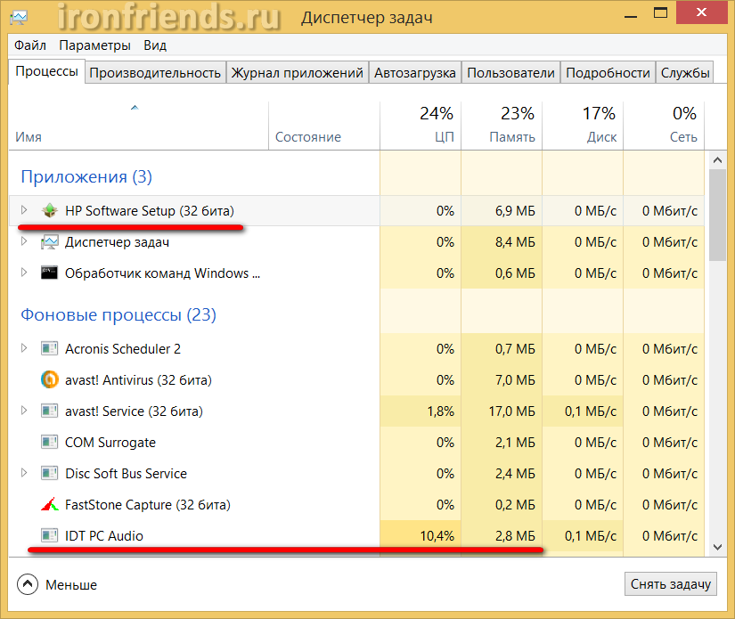 На скриншоте ниже запечатлён момент установки программой «HP Software Setup» драйвера звуковой карты «IDT PC Audio».