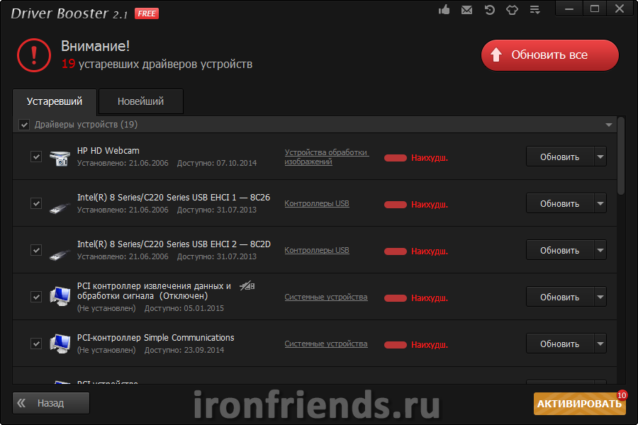 2. После непродолжительного сканирования софт подберет список устройств для которых вышли новые версии драйверов.