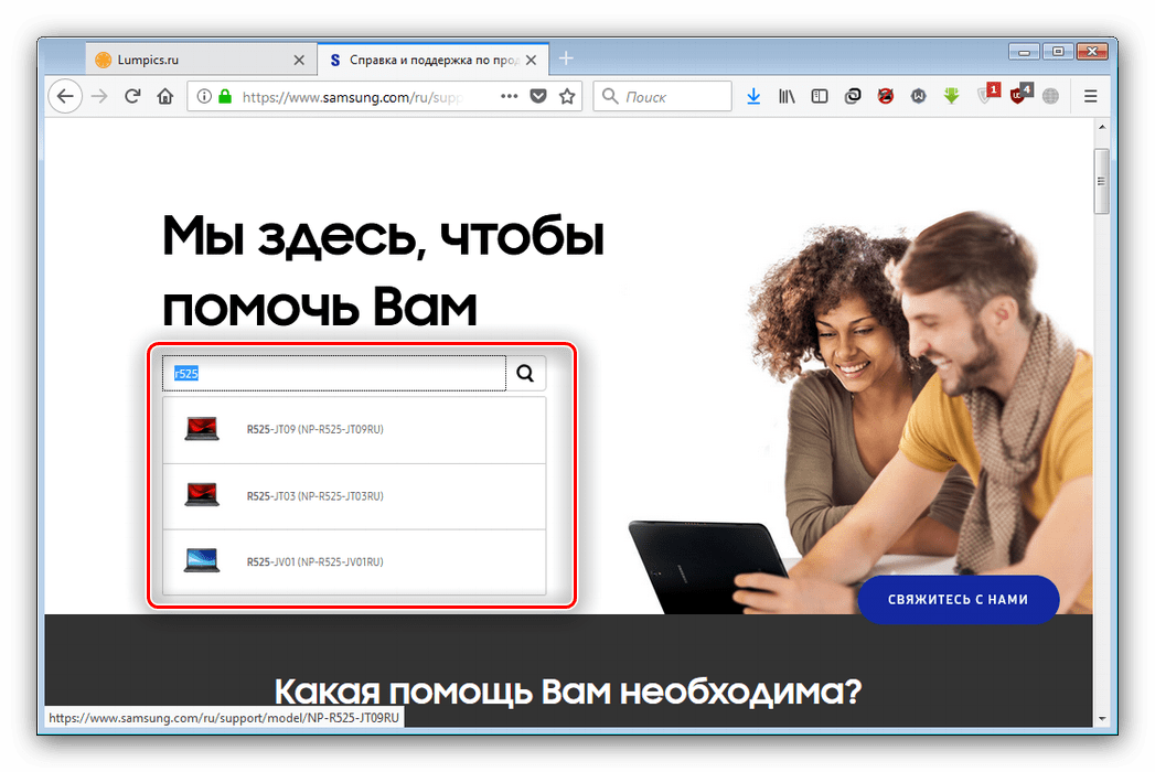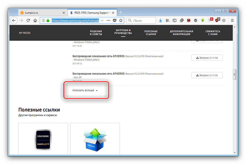 Специалисты IT-индустрии советуют начинать поиск ПО к компонентам ноутбука на сайте производителя: в этом случае гарантируется совместимость аппаратуры и софта. Мы поддерживаем эту рекомендацию, и начнём с задействования официального сайта Самсунг.