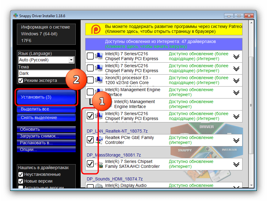 По окончании загрузки Снэппи Драйвер Инсталлер автоматически распознает оборудование компьютера и предложит список драйверов к нему.