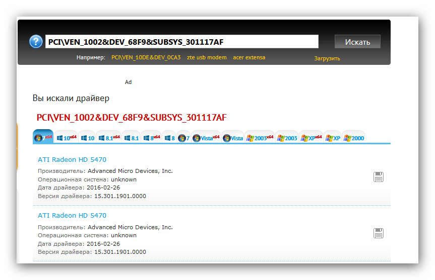 Трудоёмкий, но весьма надёжный способ получения драйверов — задействовать для поиска ИД оборудования, то есть уникальные аппаратные имена каждого из компонентов рассматриваемого ноутбука. Наши авторы создали руководство по получению и дальнейшему использованию идентификаторов и чтобы не повторяться, приводим ссылку на данный материал. ![]()