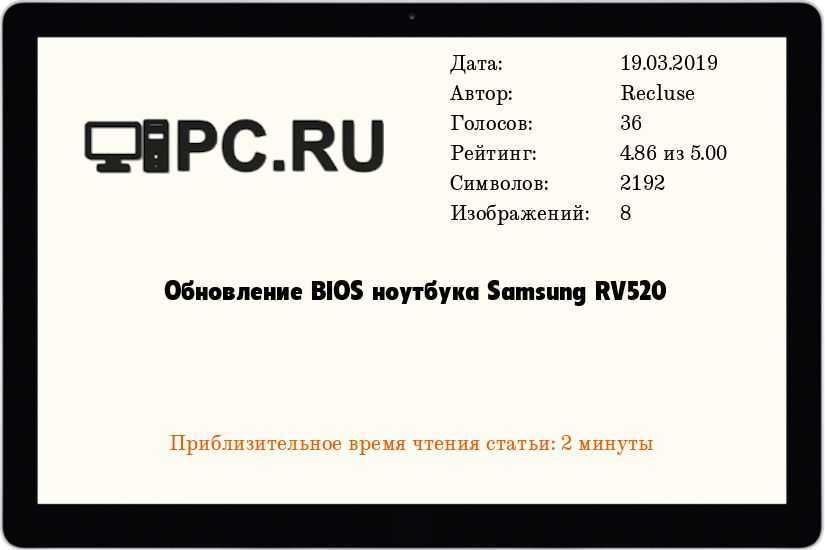 Инструкция по обновлению BIOS на ноутбуке Samsung RV520