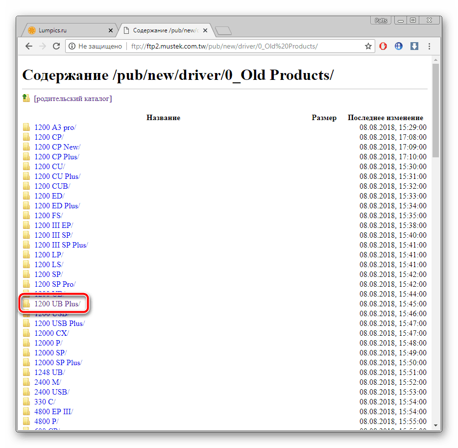 1200 UB Plus является уже устаревшим оборудованием, поэтому файлы к нему были сохранены в отдельную папку, открыть которую можно через «Europe-FTP».
