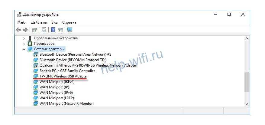 При правильной установке ПО в списке оборудования диспетчера устройств Windows появляется название адаптера.