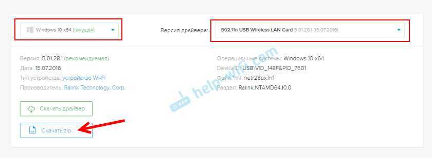 Чтобы скачать драйвер на компьютер, нужно нажать на кнопку «Скачать .zip».