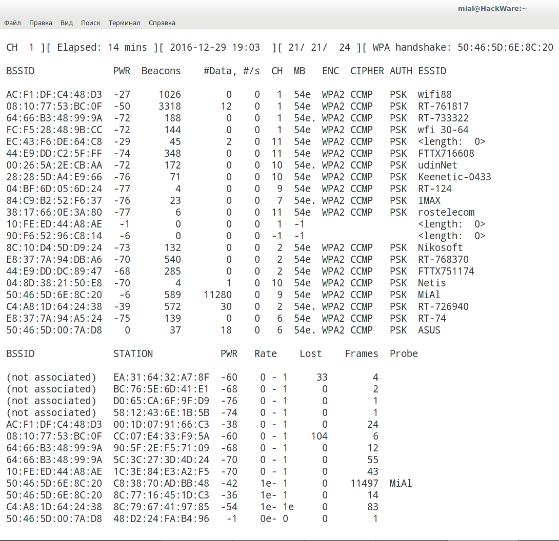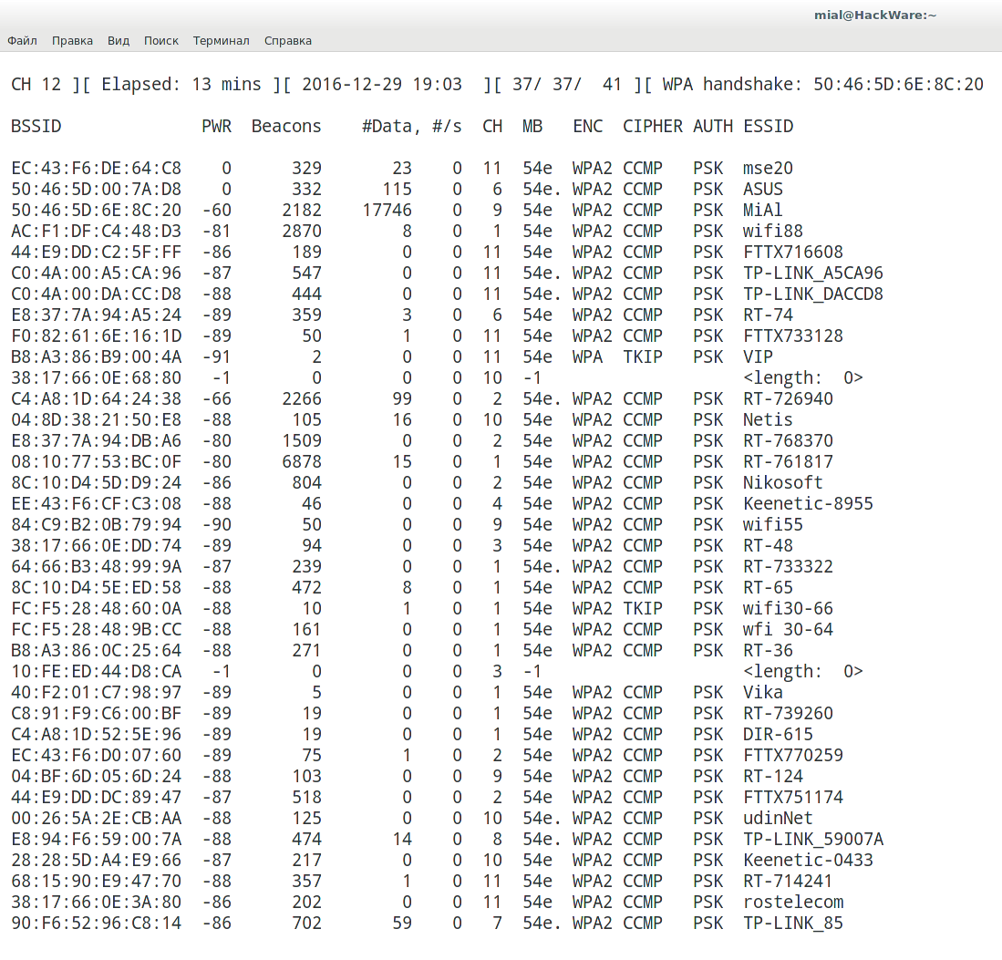 А это список обнаруженных ТД с помощью адаптера на основе чипсета Ralink Technology, Corp. RT3572 (карта Alfa AWUS052NH ), в это же самое время, в этом же самом месте: