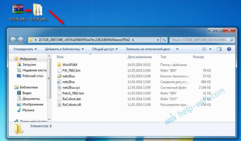 Сохраняем архива на компьютер. Дальше извлекаем файлы и папки из архива. Для интереса можете открыть папку. Посмотреть что там. Как видите, в моем случае, в корне папки драйвера для Windows 7. И есть еще папка с драйверами для Windows XP.