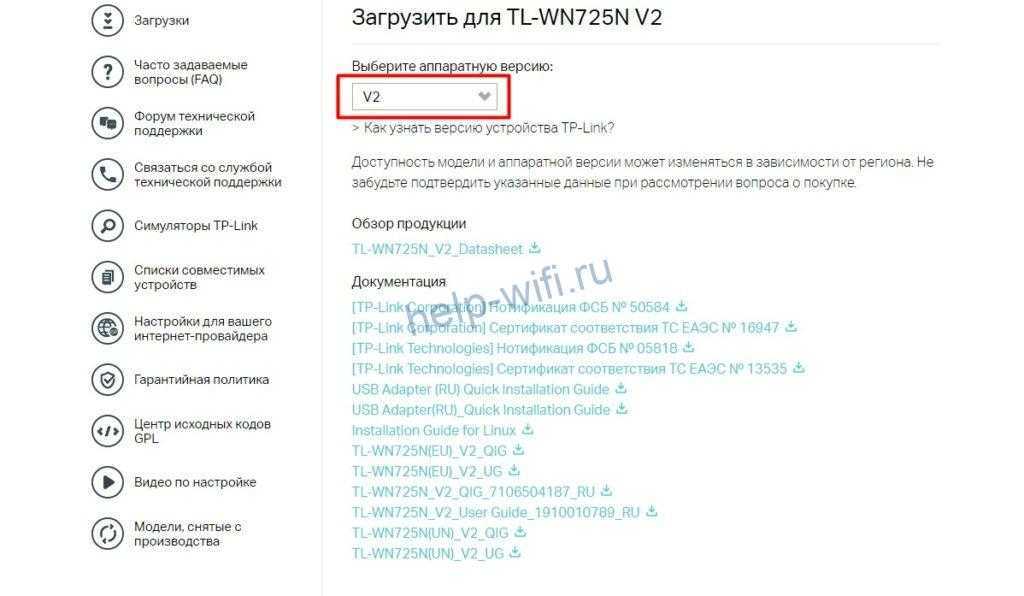- ПО для операционной системы Linux у Ver. 1 и Ver. 2 отсутствует. Драйвера есть только для третьей версии – по адресу https://www.tp-link.com/ru/support/download/tl-wn725n/v3/