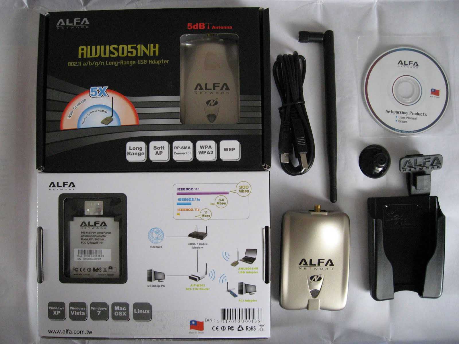- запечатанная в коробке Alfa AWUS051NH с креплениями и прочими принадлежностями