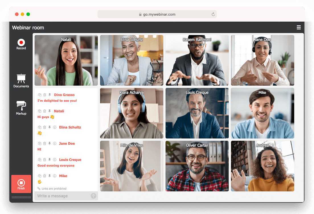 - Текстовый чат позволяет закреплять важные сообщения на экране для всех участников встречи;