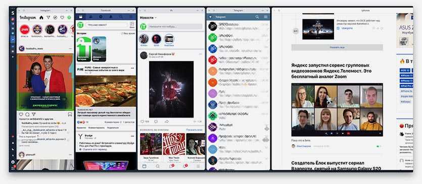 Я сразу же открыл ленты Instagram, Facebook, VK и мессенджер Telegram. При этом на моем широкоформатном мониторе 21:9 осталось место еще на один полноценный сайт без боковой прокрутки.