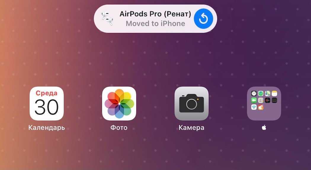 В следующий раз, когда произойдёт событие-триггер, активирующее механизм переключения, на экране устройства, с которым ваши AirPods были сопряжены изначально, появится системное оповещение о переключении на устройство, на котором транслируется звук. Несмотря на что что ресинхронизация происходит практически мгновенно, вы можете отменить это действие нажатием на синюю кнопку с круговой стрелкой на уведомлении. В этом случае AirPods останутся подключёнными к исходному гаджету и переподключения не произойдёт.