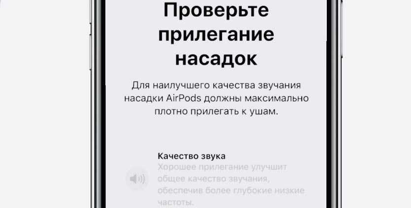 При первоначальном подключении система предложит пройти проверку плотности прилегания наушников к ушам. Так получится подобрать самую подходящую пару амбушюр.
