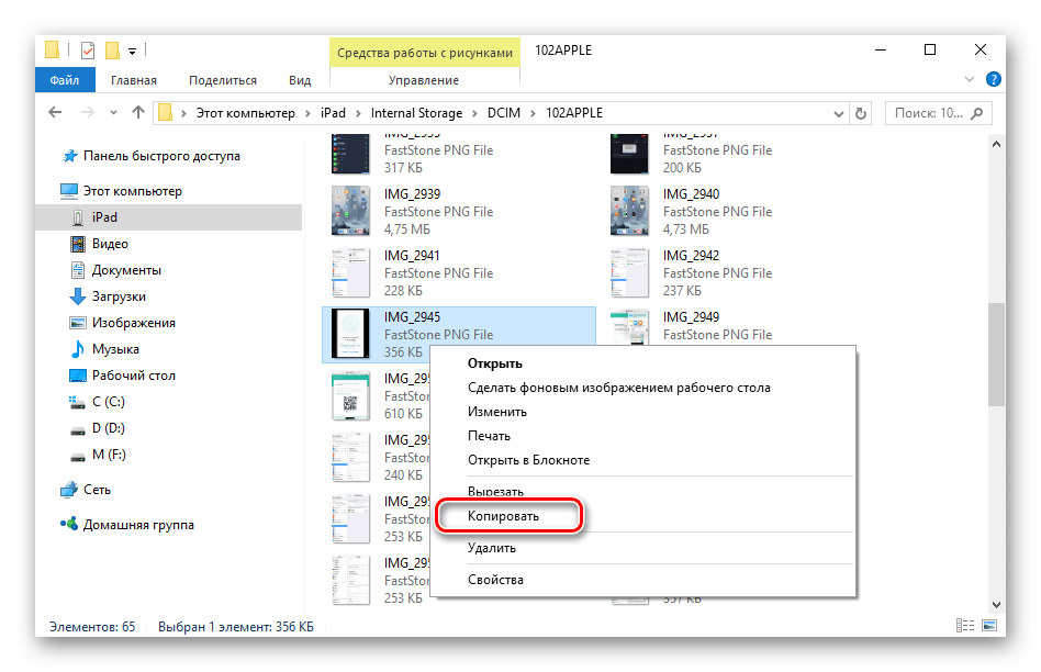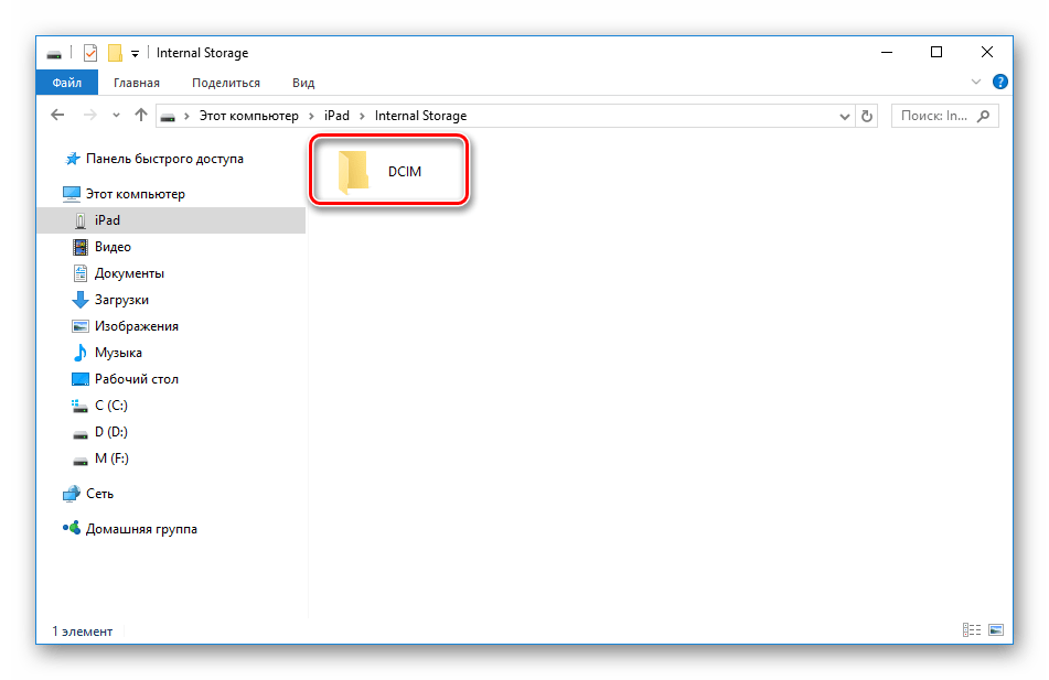 Если вам нужно перекинуть фото на компьютер и ничего более, достаточно подключить девайс к ПК через USB. Без стороннего ПО, iPhone и iPad будут отображаться как хранилище медиафайлов. При этом скопировать можно фотографии и видео, сделанные непосредственно на телефон или планшет. Для этого достаточно: