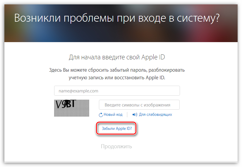 - введите свой Эппл Айди и проверочный код с картинки, кликните по кнопке «Продолжить»;