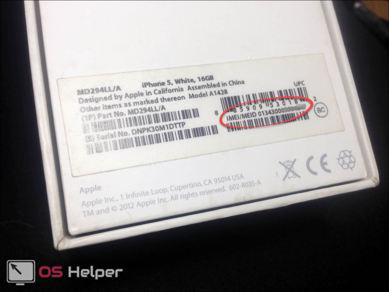 Коробка, в которой продается Айфон, снабжена наклейкой с информацией, содержащей IMEI: