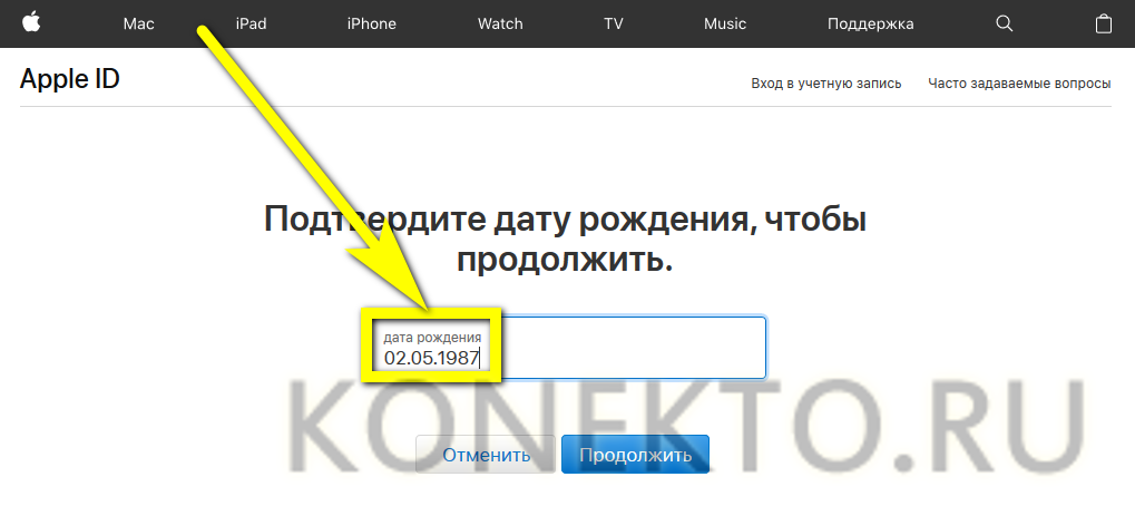 Пользователю придётся указать дату рождения — ту, что была введена во время регистрации.