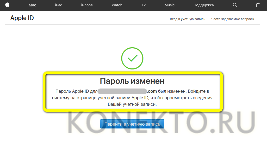 Нажав на кнопку «Сбросить пароль», юзер увидит сообщение о том, что изменения вступили в силу, и предложение войти в свой аккаунт iCloud; теперь это будет проще, чем скачать музыку на Айфон.