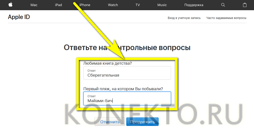 Как восстановить пароль Apple ID, ответив на контрольные вопросы?