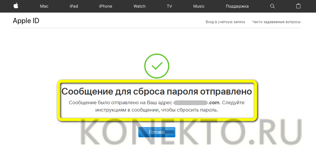 - Послав заявку на изменения пароля через электронную почту, на которую зарегистрирован Apple ID;