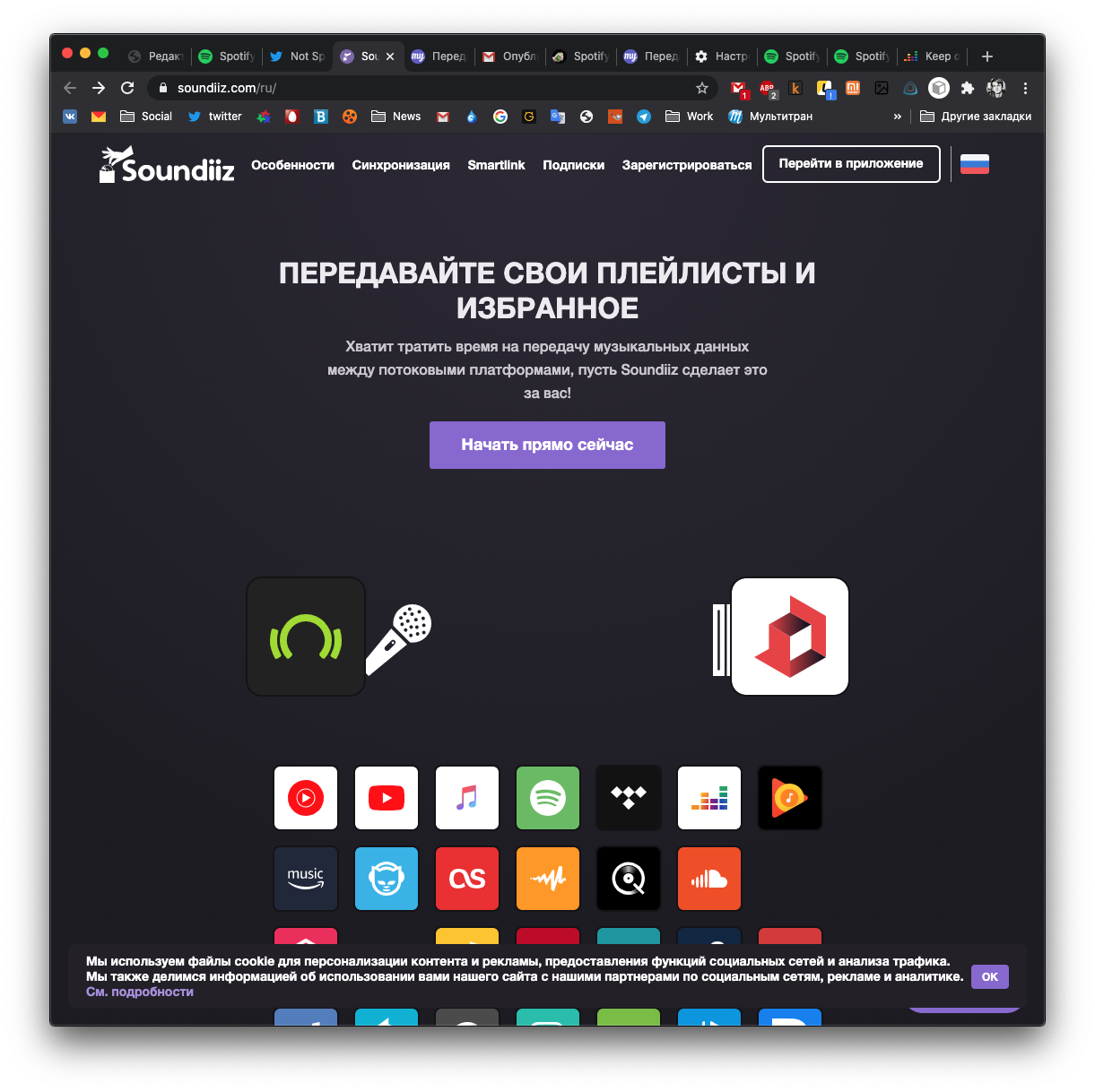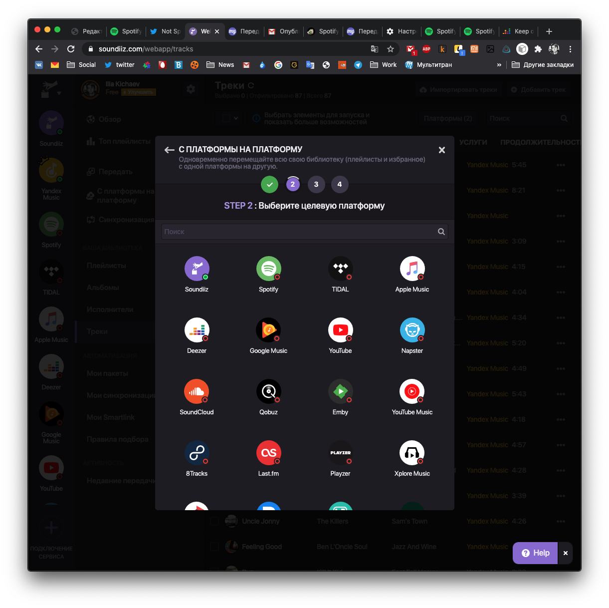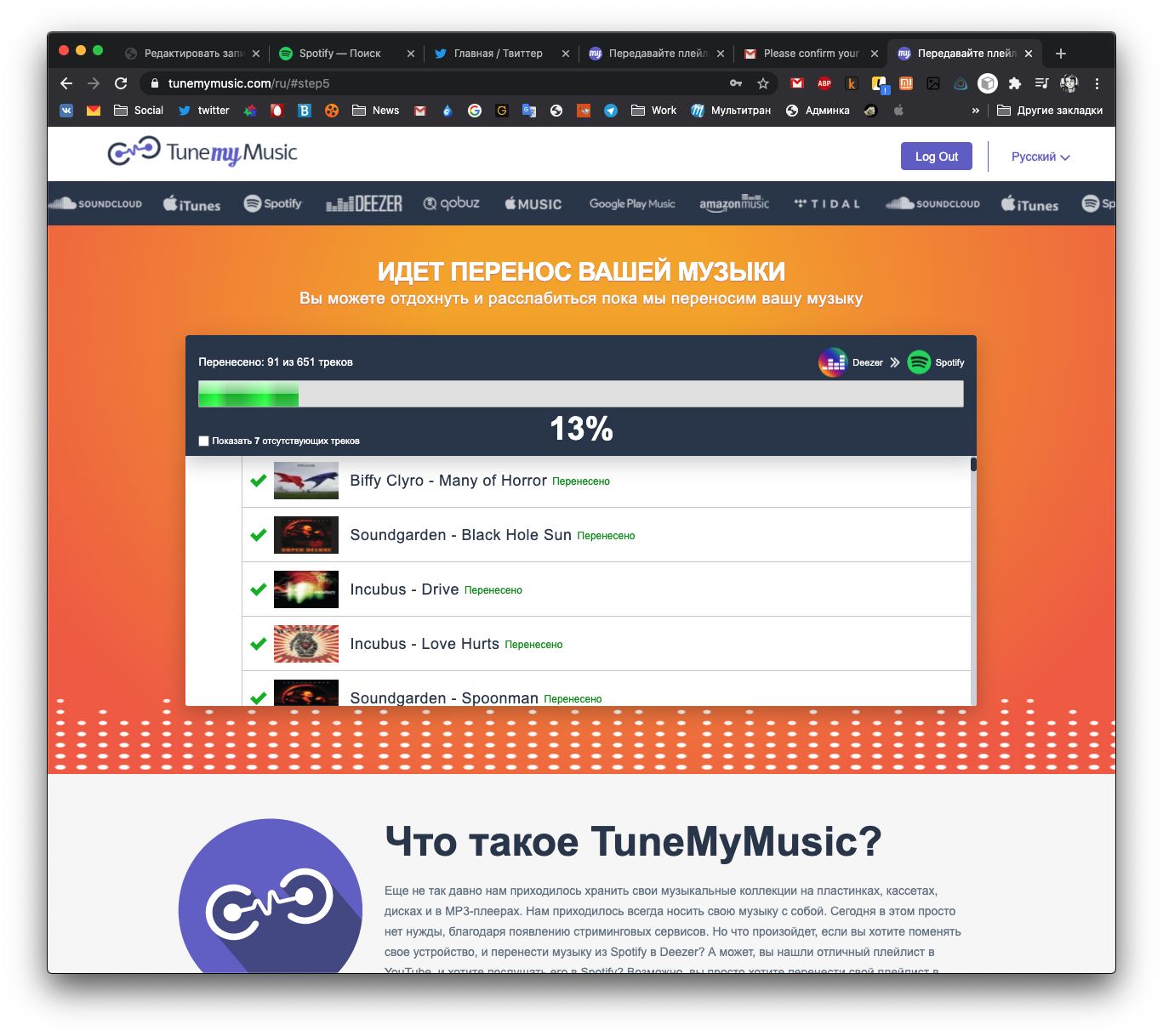 Учтите, что из-за запуска Spotify в России сильно возросла нагрузка на сайт Soundiiz. Поэтому если у вас не получится перенести музыку с первого раза, попробуйте чуть позде.