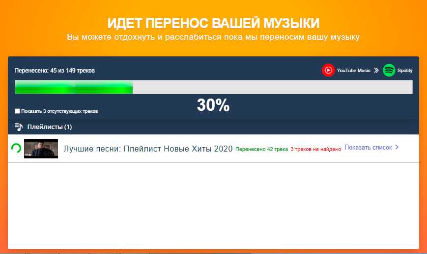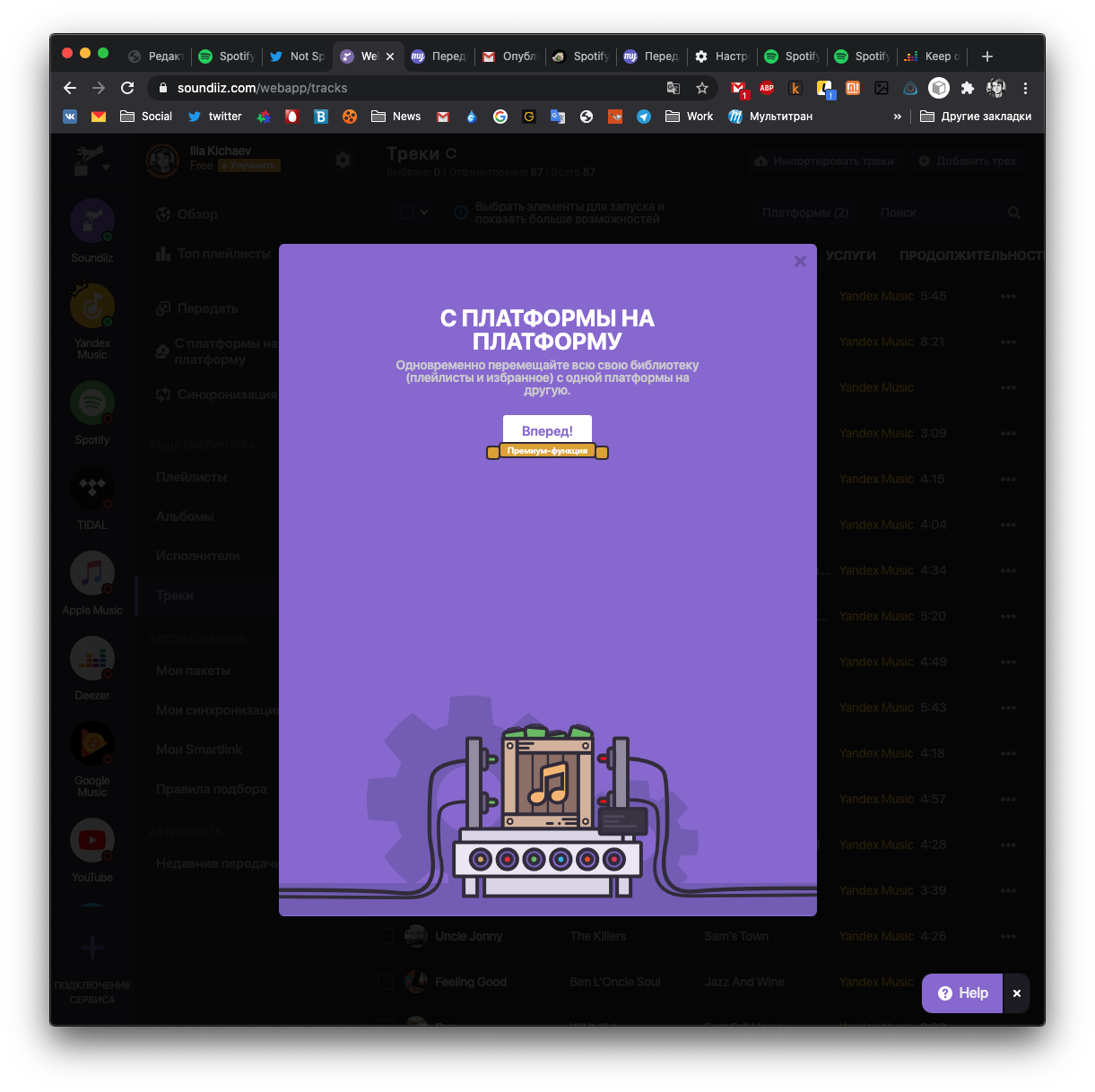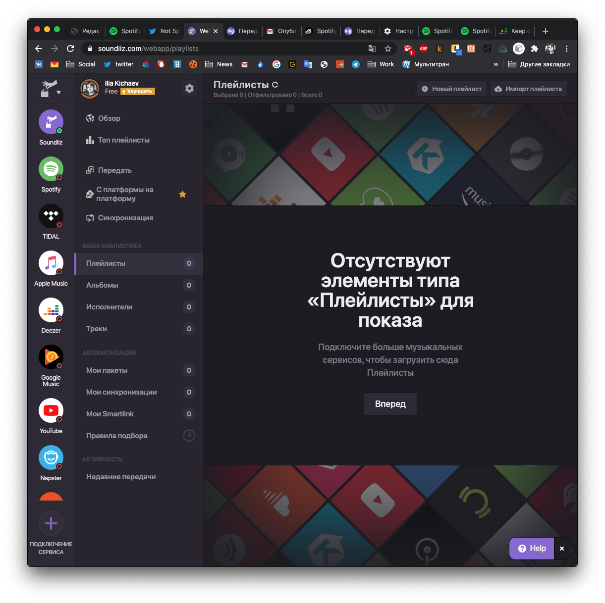 Учтите, что из-за запуска Spotify в России сильно возросла нагрузка на сайт Soundiiz. Поэтому если у вас не получится перенести музыку с первого раза, попробуйте чуть позде.