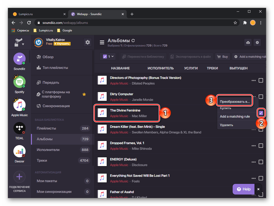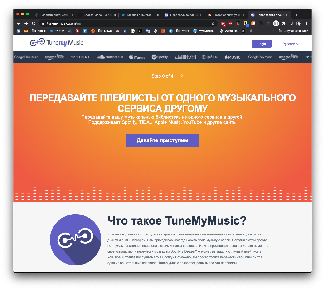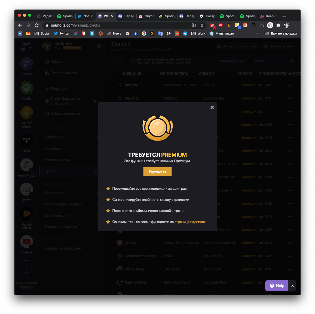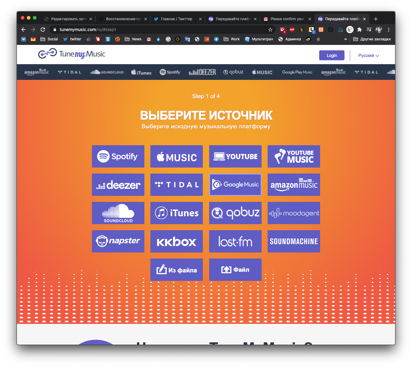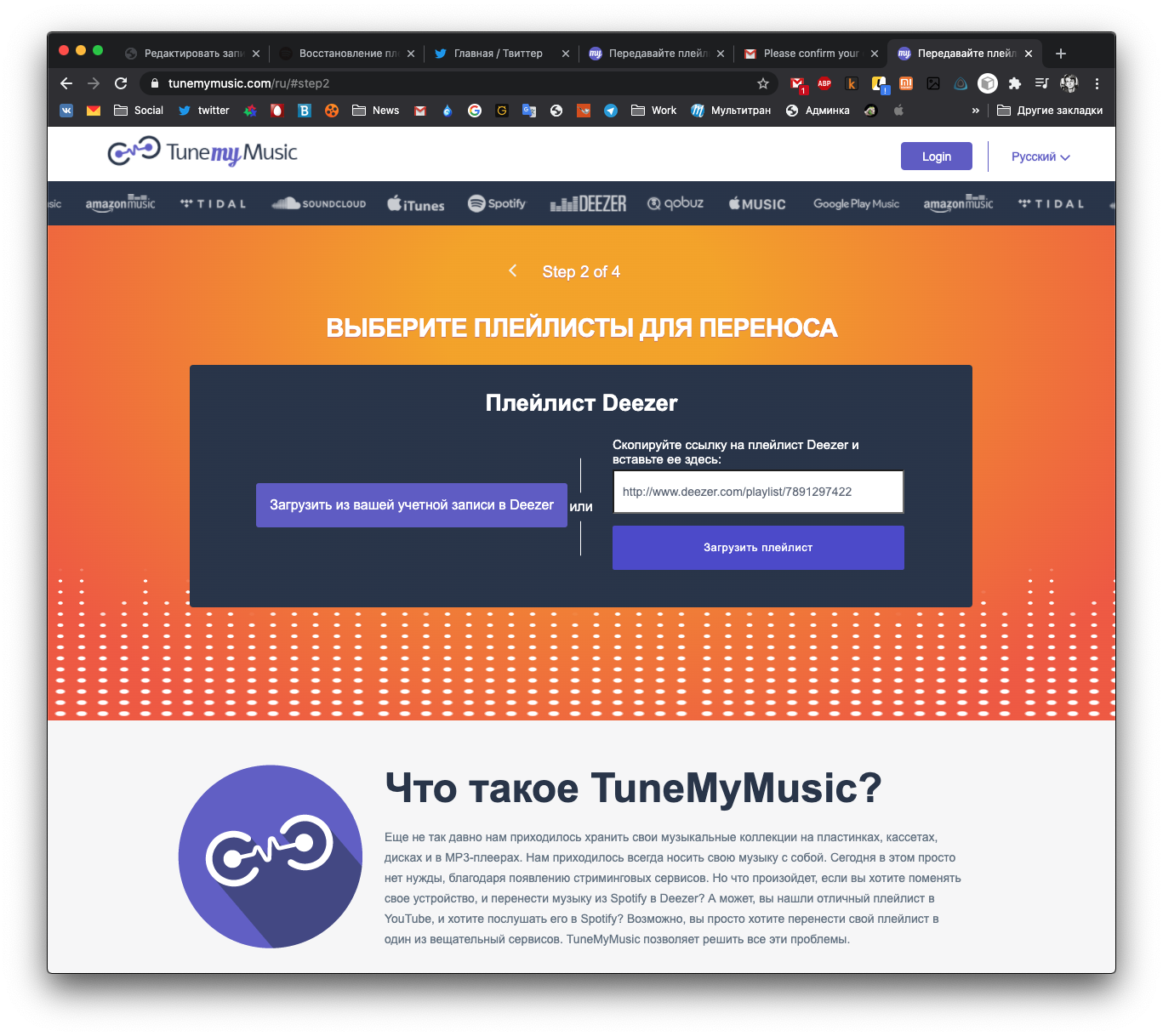 Этот сервис уже платный, но он и более наполнен различными функциями. В том числе здесь есть поддержка Яндекс.Музыки и других сервисов, которых нет в Tune My Music.