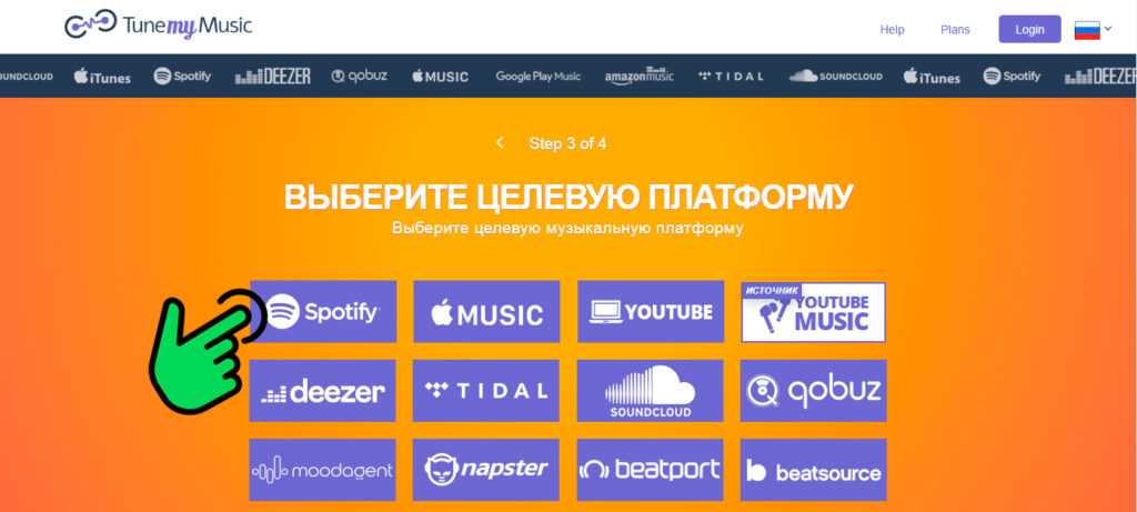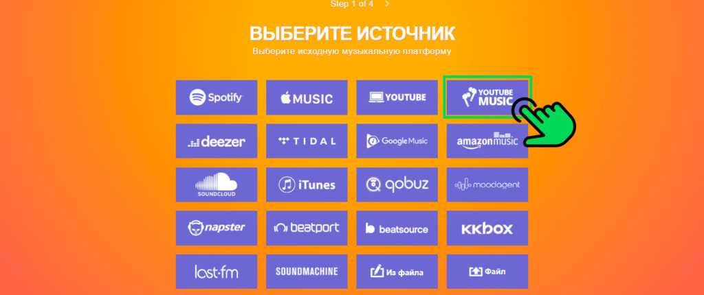 Кликаем на кнопку платформы, с которой мы хотим перенести песни.