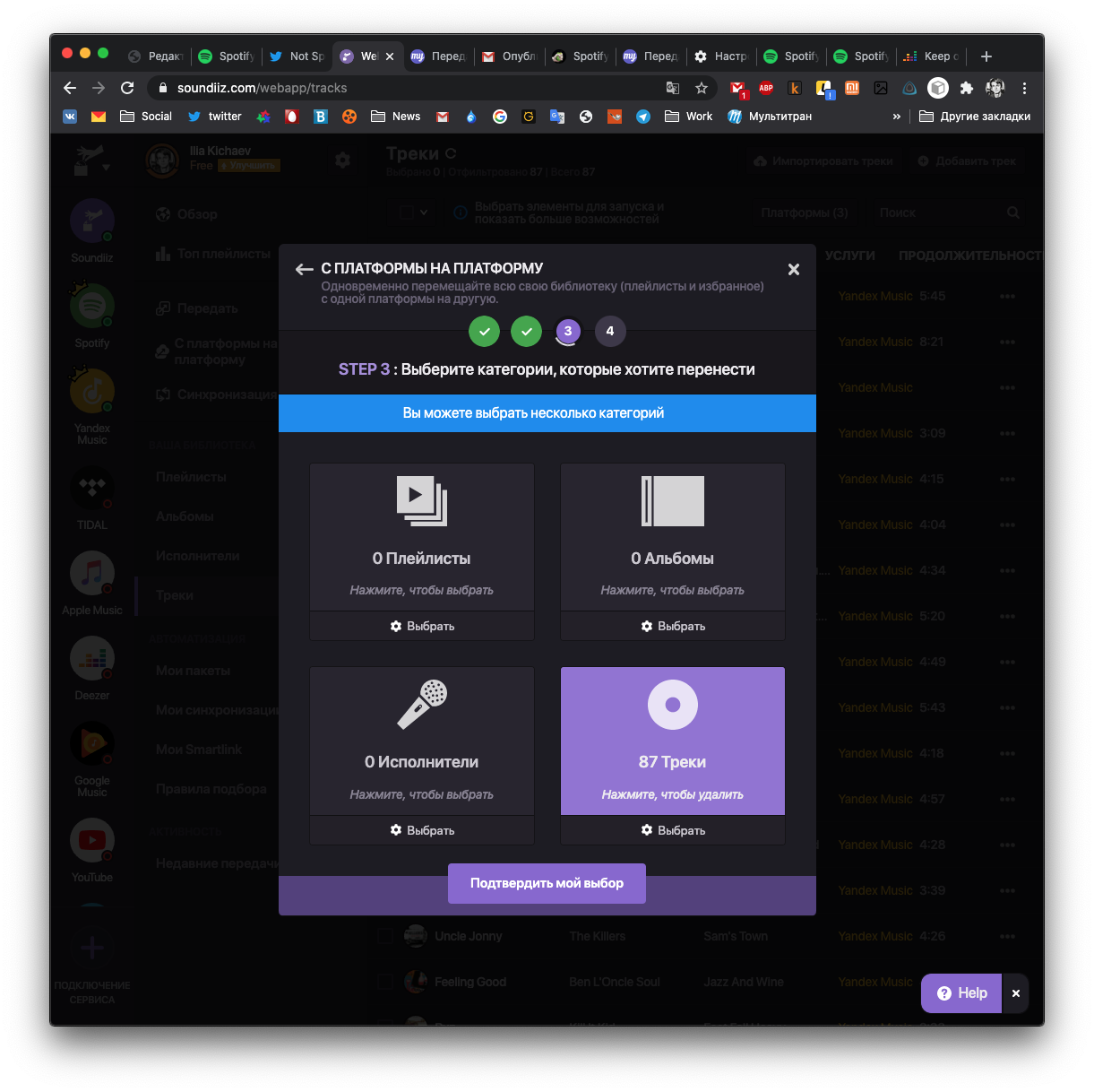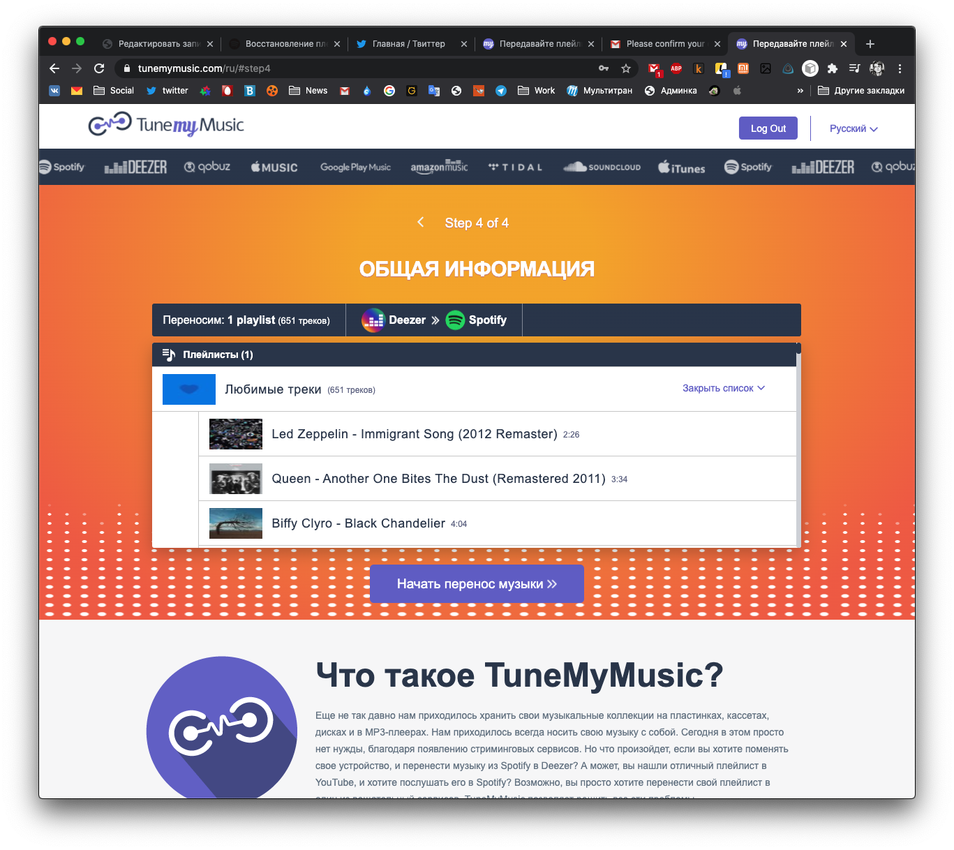 Вот, как можно перенести свои треки при помощи данного сервиса: