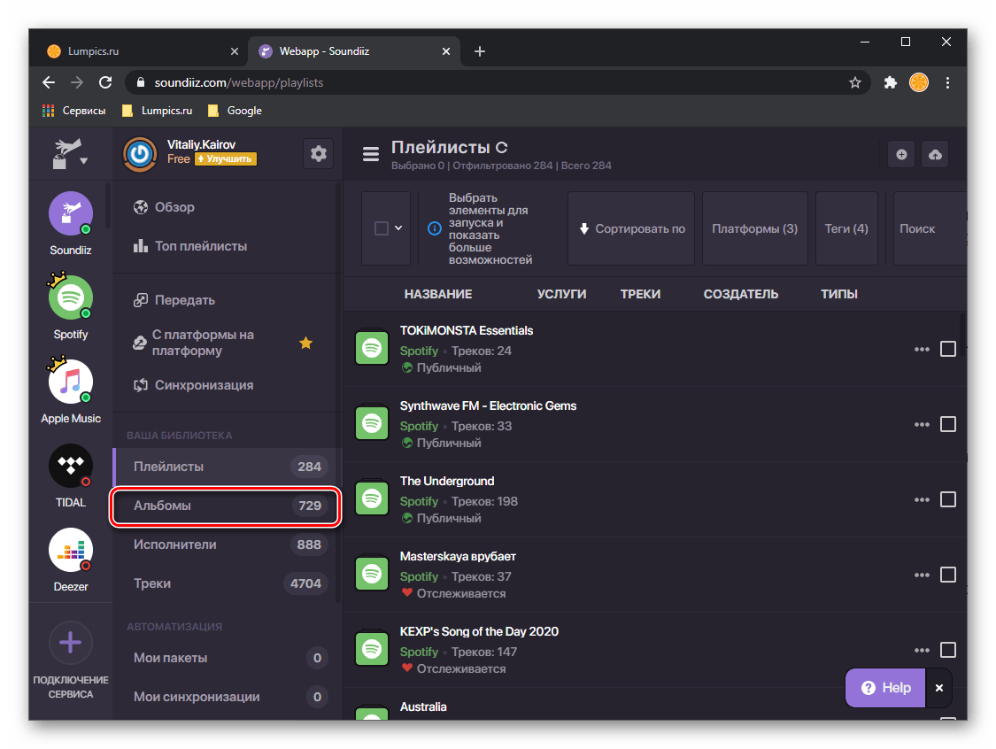 • SoundiizПереносит плейлисты практически из всех существующих музыкальных сервисов, в том числе из ВК и Яндекс Музыки). Имеется функция синхронизации плейлистов между сервисами. Единственный минус — бесплатная версия сильно урезана в возможностях.https://soundiiz.com/ru/